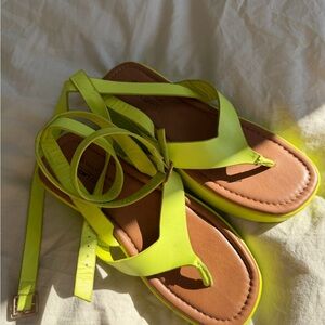 Bright neon green sandals with a strappy design. Perfect for a bold look.