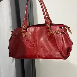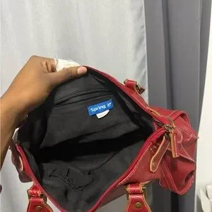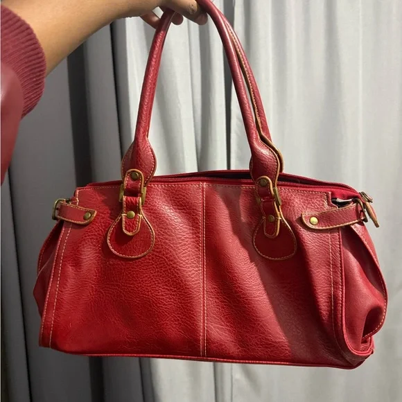 Chic red shoulder bag with gold accents. Perfect for daily use. Stylish and versatile.