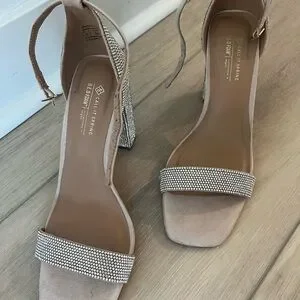 Chic beige heels with sparkling rhinestones. Perfect for adding glamour to any outfit.