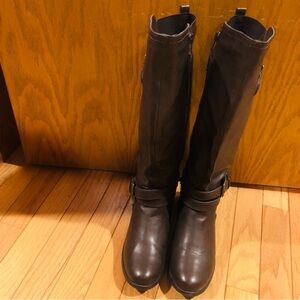 Call It Spring Size 7 Dark Chocolate Brown Knee High Full inside zipper Buckles