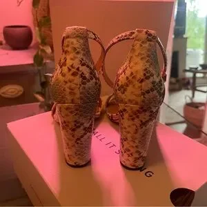 Stylish snakeskin block heels. Perfect for a bold look. Comfortable and trendy.