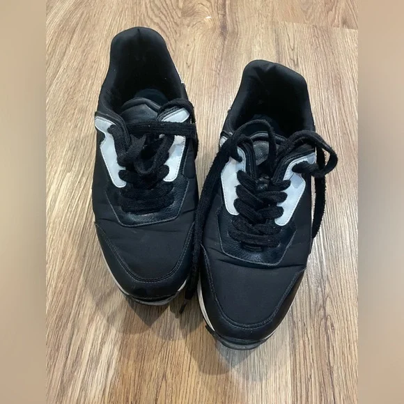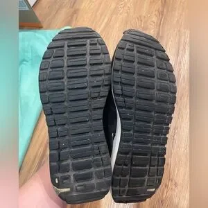 Stylish black sneakers with white accents. Great for casual wear. Size: 7
