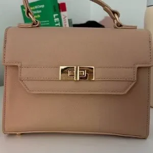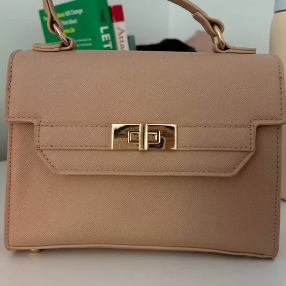 Chic mini bag with a structured design. Features a stylish gold clasp. Perfect for day or night.