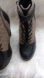 The boots are primarily black and brown. The lower part, including the toe and heel, appears to be black leather or a similar material. The upper shaft features a quilted, textured brown fabric, likely suede or a similar soft material.