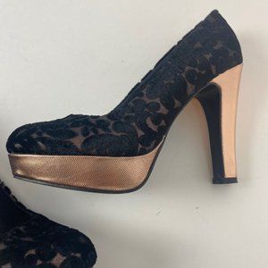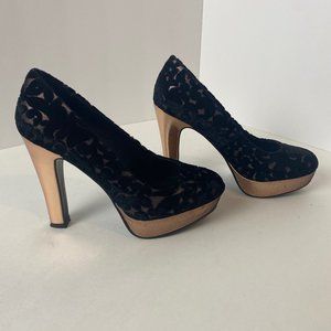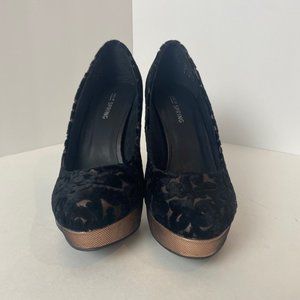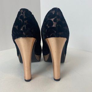 Call It Spring Women's Black Faux Suede Rose Gold Heels Size 6