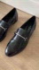 Elegant black slip-ons with a polished finish. Ideal for versatile styling. Lightly worn.