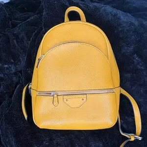 Stylish yellow leather backpack perfect for everyday use. Features a sleek design with ample storage space.