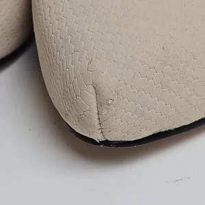 Worn very little. Does have a scuff mark on front of one shoe. Not very noticeable when wearing and could easily be filled in to make less noticeable.