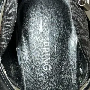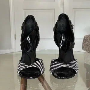 Stylish zebra pattern heels with strappy design. Perfect for a bold look.