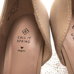 Call It Spring heels-6-beige- never worn- dress them up or down. Nice looking dressy shoes can be worn with jeans, tights m skirts or dresses. Bundle up with other t items and save money.