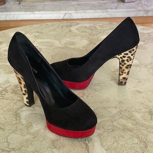 In good preowned condition cool 90’s inspired platform pumps with stunning combination of colours, black, red platform and leopard print heels.