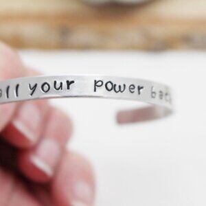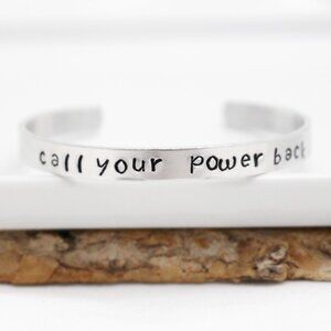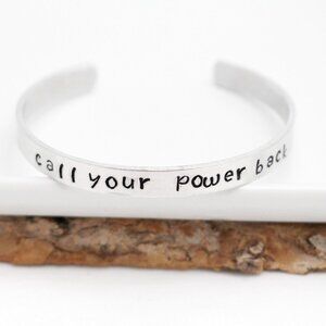 Call Your Power Back - Hand Stamped Anodized Aluminum Bangle - Adjustable