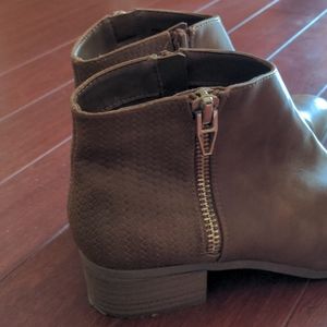 Call it Spring ankle boot with small heel, textured back, and zipper detailing. Never worn. Size 8