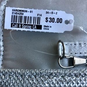 Silver Call it Spring clutch. New with tag! Not sure how I managed to get a pen mark on the interior 🤔 Discounted to reflect this. Chain shoulder strap is included.