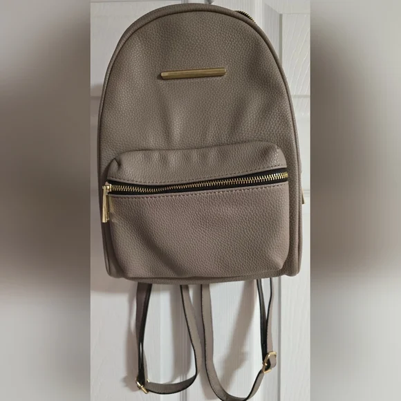 Lightweight faux leather taupe backpack.