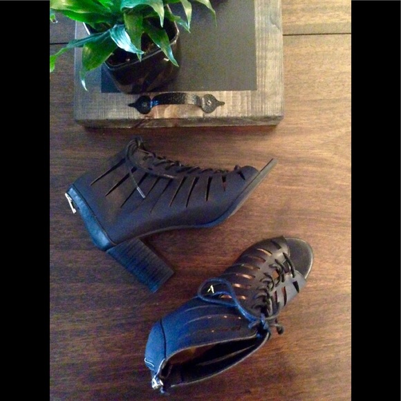 Open toe booties - Laser Cut outs and Tie up detail in front they have a zipper closure in back