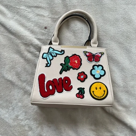 Call it Spring cream handbag with shoulder strap and cute patches never worn