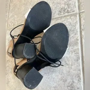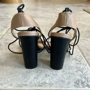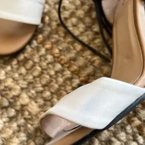 Call it spring heels in good pre-loved condition. There is a bit of discolouration and a couple flaws pictured in the last two photos. Otherwise, these heels have barely been worn.