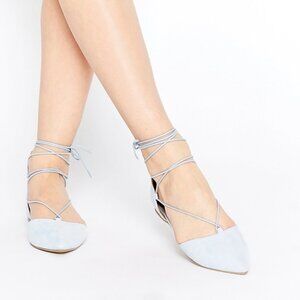 Baby Blue Flats with a Lace up Detailing - Cinnabar Style in Light Blue