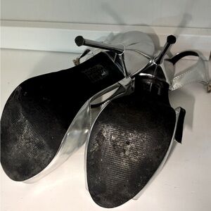 Elegant silver high heel sandals with a sleek design. Small fit. 3.5” heel