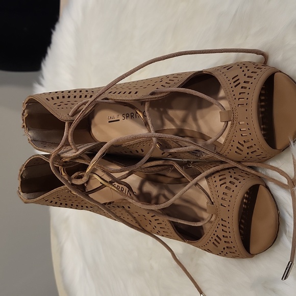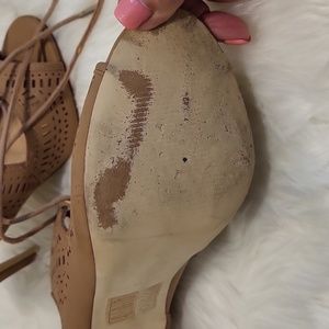 These are a cute pair of lace up shoes Size 6. worn a couple of times. There is a little scratch on the heel of the right shoe. Other than that, they are in good shape. Faux suede. offers welcomed. smile 😃 🌷