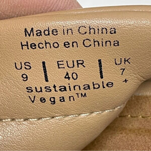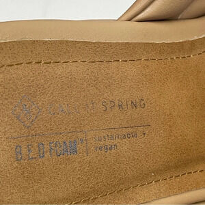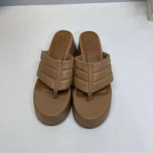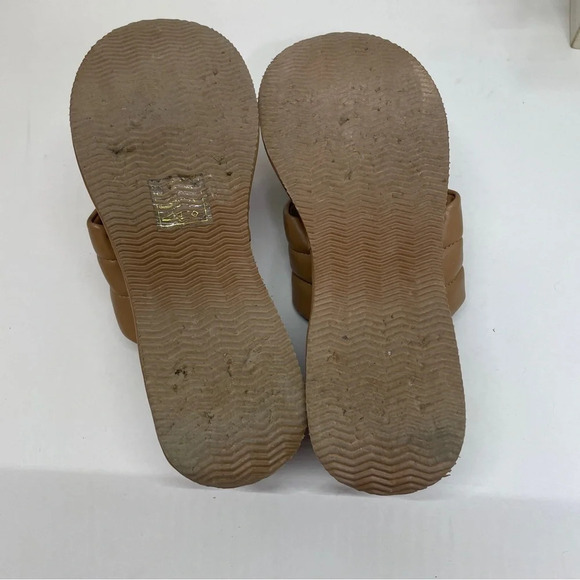 Us9 light wear on bottom of sandals rest is in amazing condition preowned t bar style with large platform beige vegan leather 100%