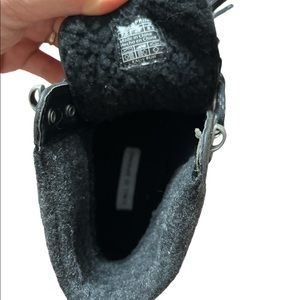 Rubber sole, felt boot tongue and back cushion.