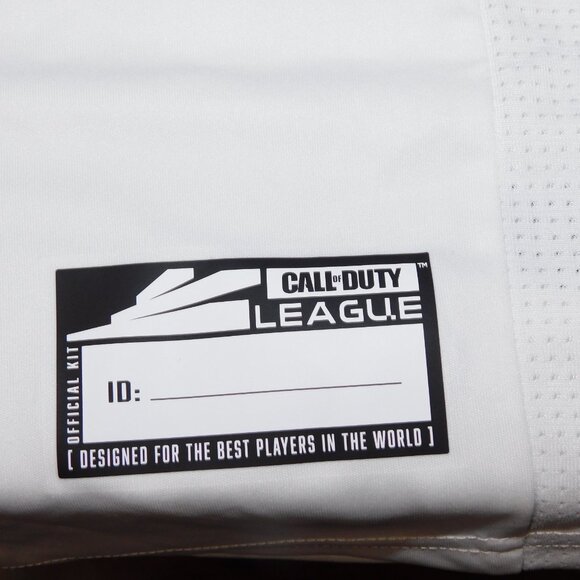 This Mens Large Call of Duty League Esports Team Minnesota Rokkr White pro jersey / shirt is NEW with Tag . Shirt is 100% Polyester - Machine washable Features Logo and name on Front with Player ID blank spot near the hem. Laser cut mesh strip from underarm to Hem. Middle upper back has call of duty league with team logo. Bottom back hem says Minnesota.