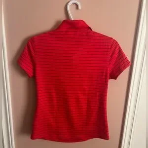 The size tag is cut off but I’m pretty sure it says it’s an XS, but if you’re looking for a more form fitting shirt it could work as a S. Let me know if you have any questions or need any measurements.