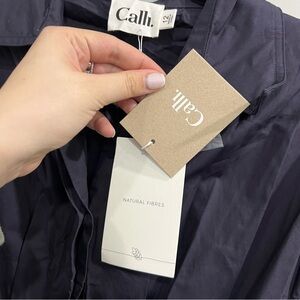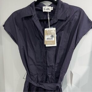 Calli Button Up Navy Belted Dress Bonne Shirt Dress Us 8 - Natural Fibres
