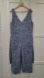 Calme Easy V Neck Belted Jumpsuit Printed Grey Blue Pockets Gauze Women’…