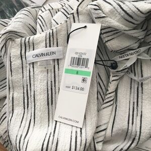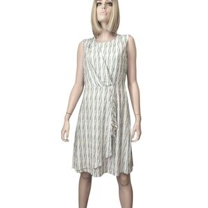 Calvin KLEIN Dress Rayon Blend Stripe Draped Pleated Ruffle Flounce Versatile