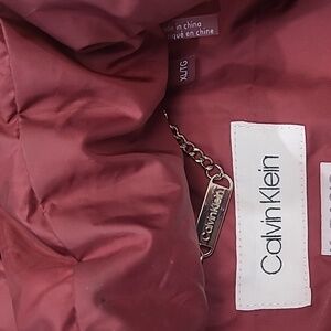 Calvin KLEIN women's LONG QUILTED FAUX FUR HOODED Burgundy PARKA XL