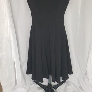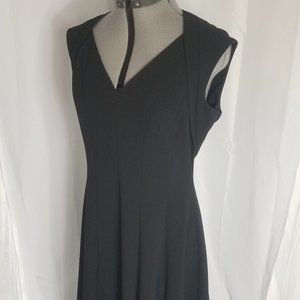 Calvin Klein, 10, black, A-line cocktail dress, v neck, feels like cotton, has liner, accentuates neckline and waist.