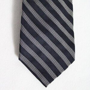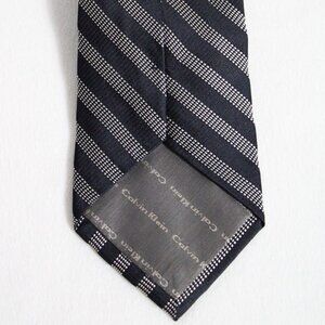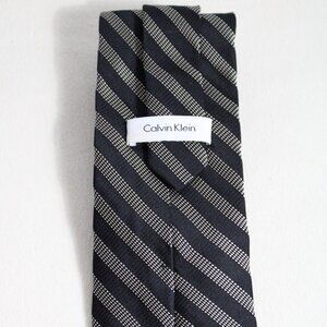 Calvin Klein 100% Silk Tie - Black & Cream Diagonal Stripes