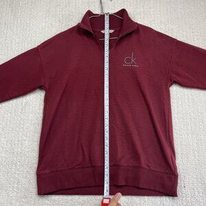 Calvin Klein 1/4 Zip Sweater Mens S Cotton Maroon Knit Mock Neck Pullover Read