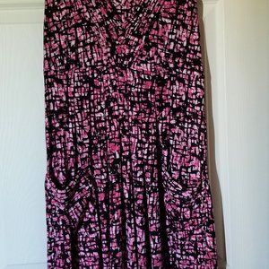 Size 2 babydoll swing style dress. Multi color with front pockets, details V neckline. Perfect dress for Saturday at the market or a fun lunch date!