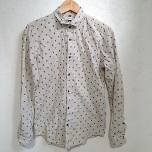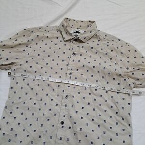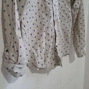 Calvin Klein | Beige & blue patterned men's button up dress shirt slim fit. men's size medium