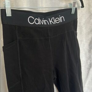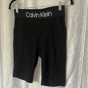 Sleek biker shorts with Calvin Klein logo. Ideal for active wear. Has pockets on the sides.