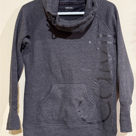 Elegant black cowl neck sweatshirt by Calvin Klein. Features a comfortable design with a stylish look.