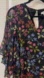 Stylish black dress with vibrant floral patterns. Features elegant ruffled sleeves. Slip underneath so not see through.