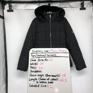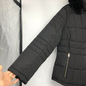 Calvin Klein Black Faux-Fur-Trim Hood Quilted Puffer Coat size L