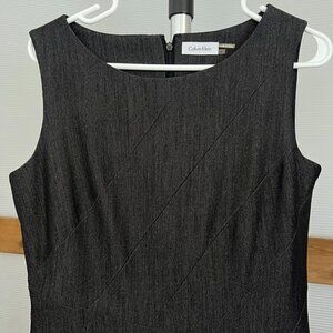 Calvin Klein Black Gray Denim Look Sleeveless Sheath Midi Dress Sz 10