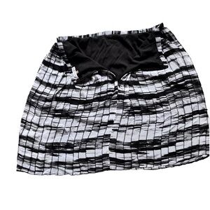 Calvin Klein Black Gray Pleated Panelled Flowy A-line Skirt Abstract Print Sz L