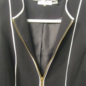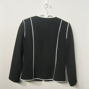 Black with white trim blazer jacket fully lined, zipper front.