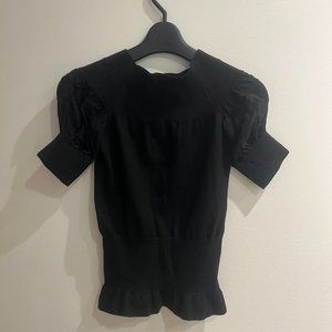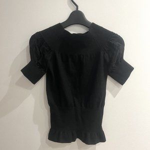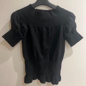 Calvin Klein Black Knit Top with Chiffon Ruffled Sleeve