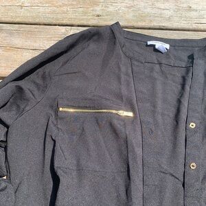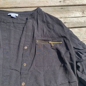 Calvin Klein Black Long Sleeve Blouse with Gold Zippers - Size XL