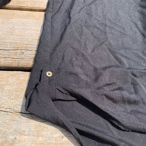 Elevate your everyday style with this chic Calvin Klein black long-sleeve blouse. This versatile top features stylish gold zipper details on the chest, adding a touch of edgy sophistication. The sleeves have buttoned tabs that allow them to be rolled up for a more relaxed, 3/4 length look.