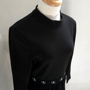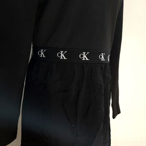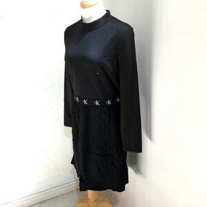 Elegant black dress by Calvin Klein with long sleeves and a chic design. Perfect for any occasion.