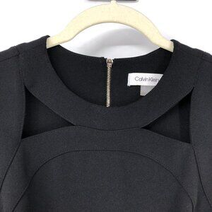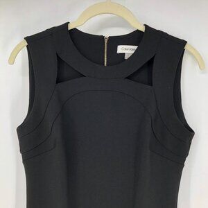Calvin Klein Black Sheath Midi Sleeveless Dress Front Cutouts back zipup size 2